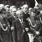 Biskup Walenty Dymek (czwarty z lewej) i wicewojewoda Feliks Widy-Wirski (trzeci z lewej) w czasie polowej mszy świętej z okazji Święta Trzeciego Maja na pl. Wolności03.05.1945