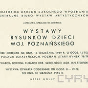 Afisz wystawy rysunków dzieci województwa poznańskiego zorganizowanej w Pałacu Działyńskich na Starym Rynku w Poznaniu