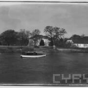 Warta w Jaszkowie w gminie Brodnica, na drugim brzegu dwór zbudowany w latach 1912-20 według projektu Stanisława Mieczkowskiego