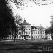 Północne skrzydło pałacu arcybiskupiego w dwudziestoleciu międzywojennym na akwareli T. Różankowskiego